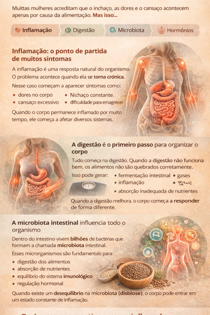 Por que tantas mulheres continuam inchadas, cansadas e com dores, mesmo tentando melhorar a alimentação?