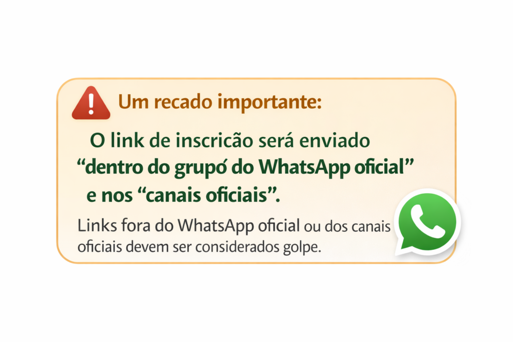 Qualquer link enviado fora dos canais oficiais deve ser considerado golpe.