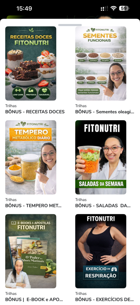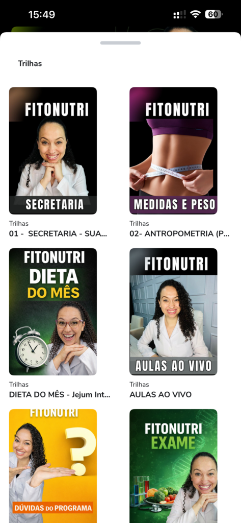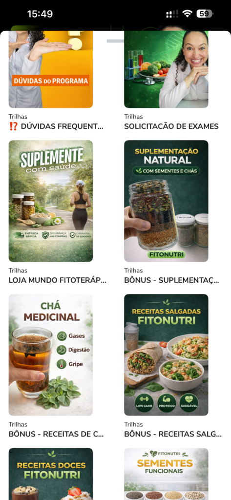 Dentro do programa você também tem acesso ao ambiente de aulas do FITONUTRI.
